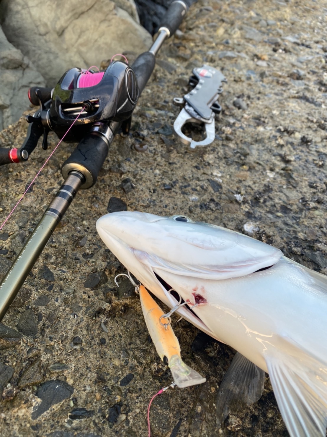 今日は、シーバスボイル、青物ナブラの中獲れたのは、私のアローシュートだけでした